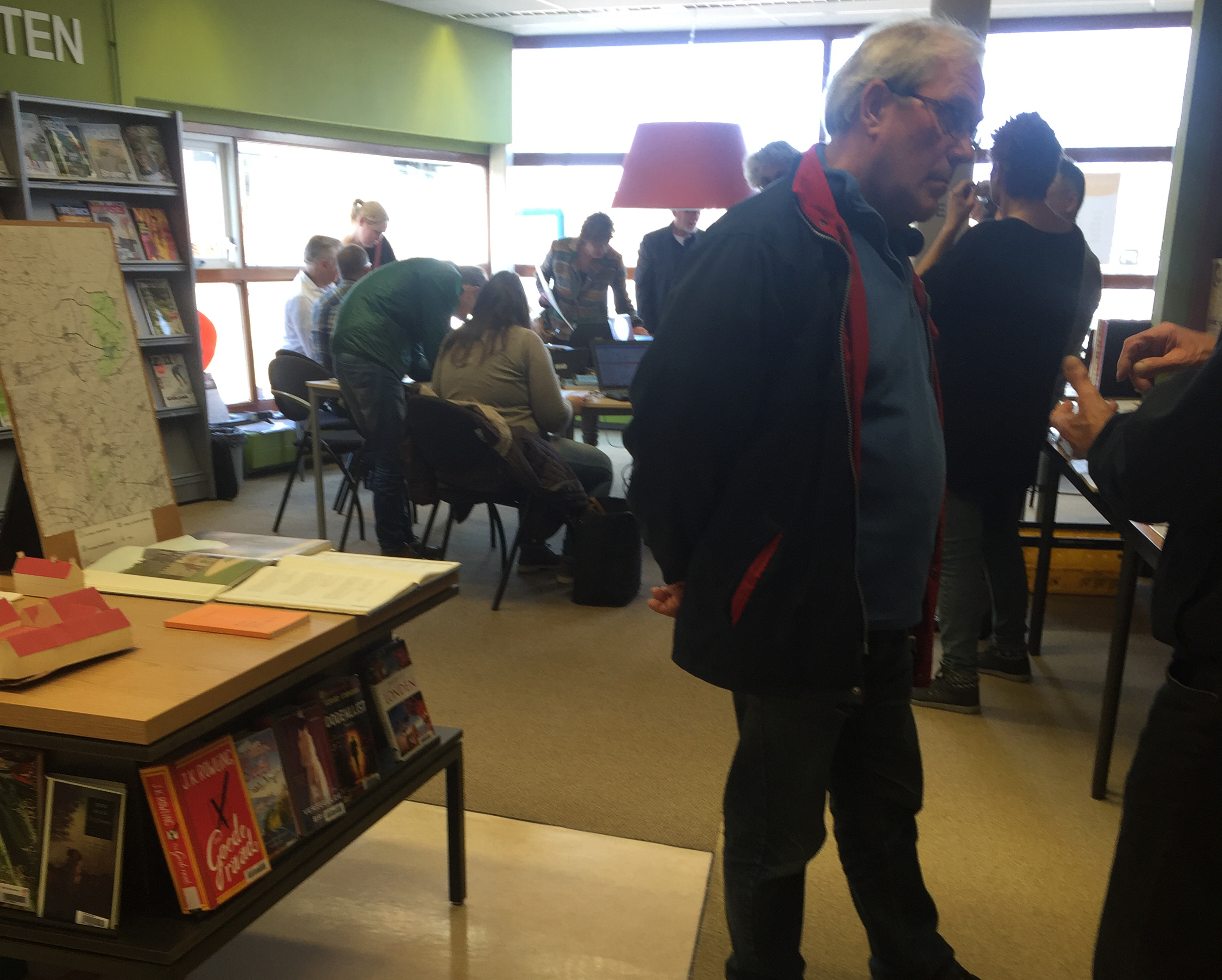 Ook de krantenknipsels en oude foto’s werden goed bekeken. Er draaide ook een presentatie met oude foto’s van Surhuisterveen, wat ook goed in de smaak viel bij de bezoekers. De gratis tekeningen van Cor Dam kregen allen een nieuwe eigenaar.